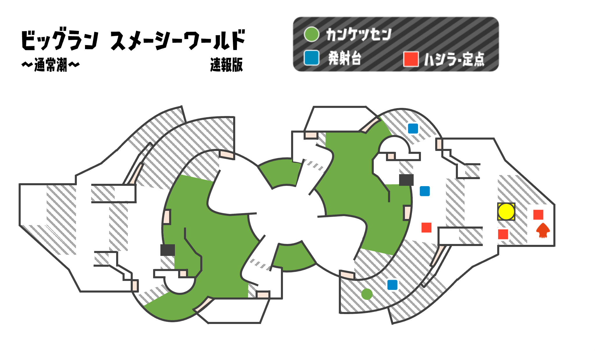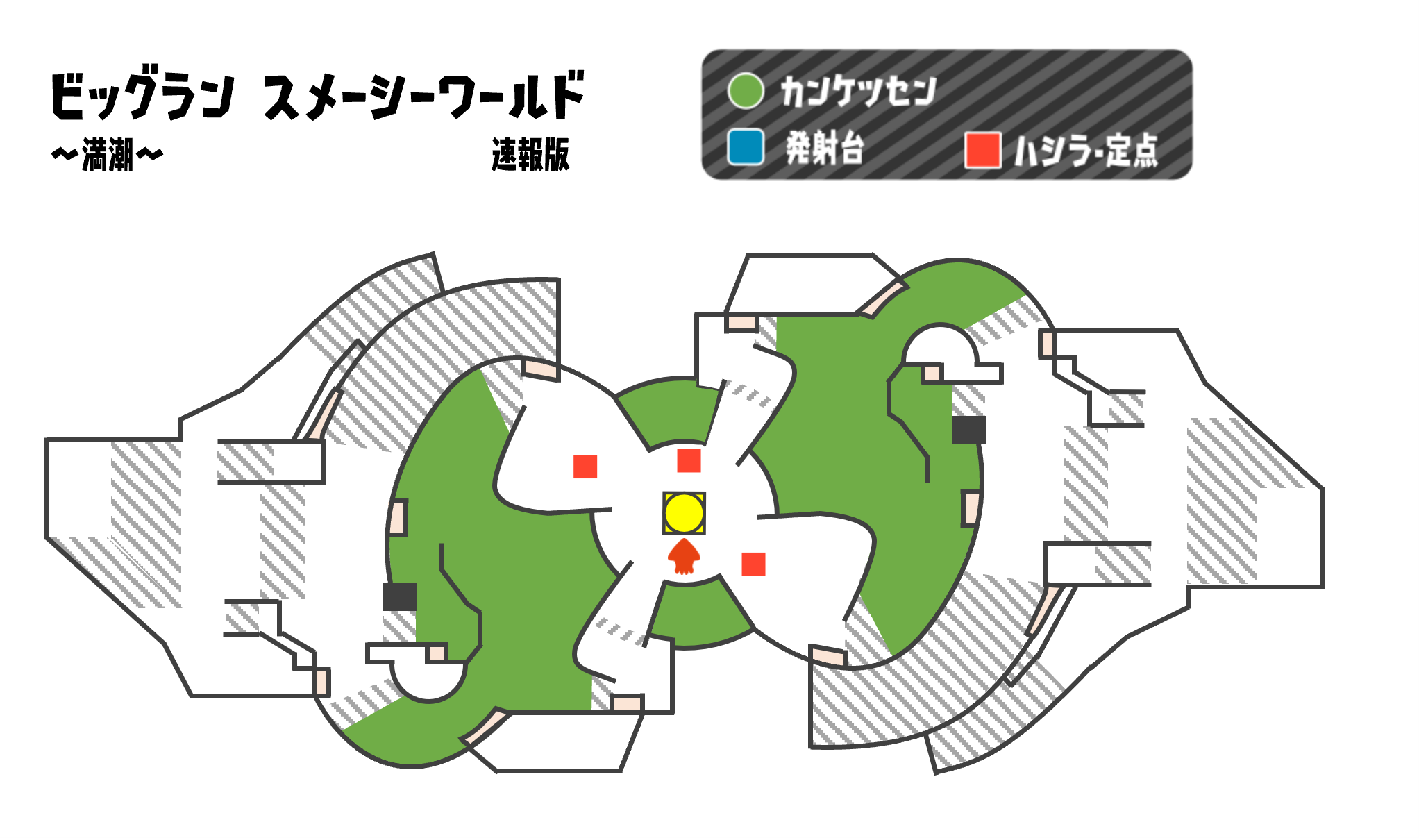 カンケツセンが関わる状況や干潮限定の特殊な状況は発生しない模様。また、通常は干潮では発生しないはずのラッシュ、グリル発進が干潮でも発生する。